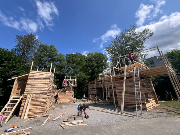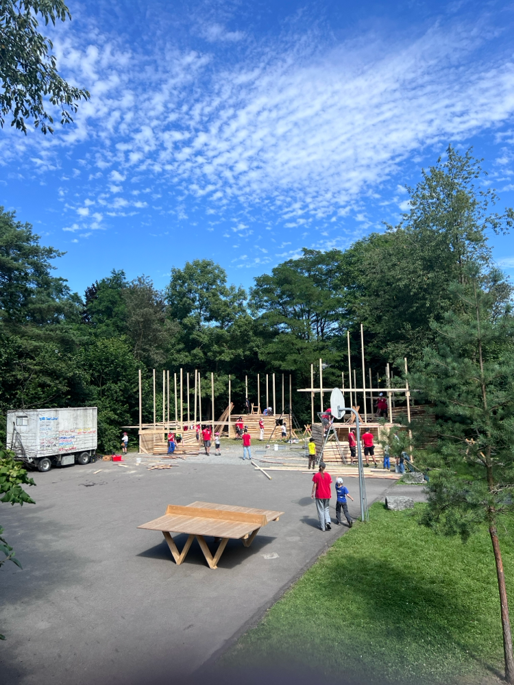Tag drei liegt in der Vergangenheit. Nach 15 Pizzen zum Zmittag und einer riesigen Wassermelone zum Znüni waren alle gestärkt und einige Hütten haben bereits ein Dach auf dem Kopf!