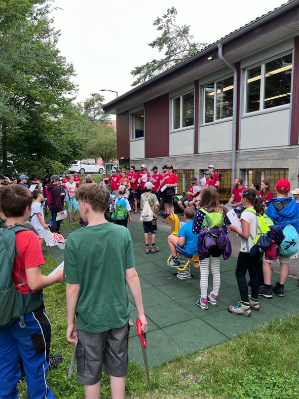 Der erste Tag ist vorbei. Nach den Informationen am Morgen und dem Singen unseres traditionellen Lagerliedes ging es bereits an die Gruppeneinteilung.